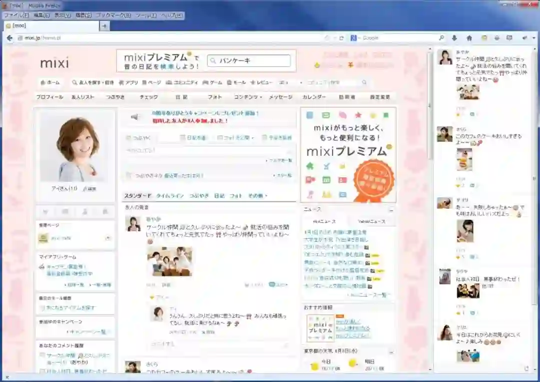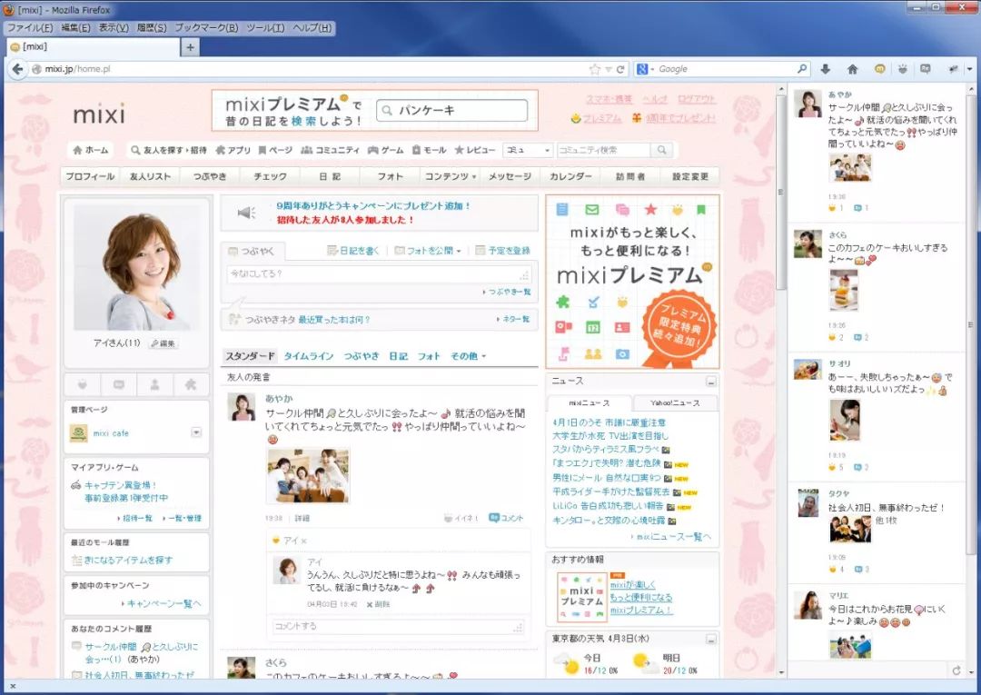 Mixi的卡通化风格非常受日本人欢迎,截止2006年,Mixi的注册用户达到480万,是当时日本用户量最大的社交网站。
