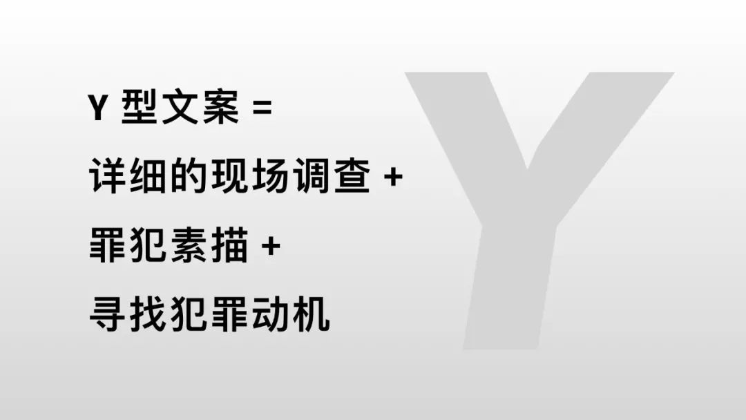 所以功能性文案或者说 Y 型文案通常都像是一个侦探,像侦探一样事无巨细,找出产品的独特卖点,在这个基础上整合出来一个购买动机,最后呈现给消费者。