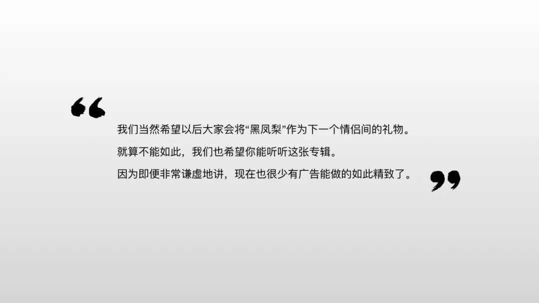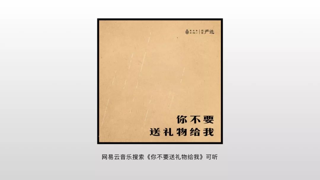 去年我写完《你不要送我礼物》我决定那年就封笔不写了。然后我在广州出差,听到了这首歌,一下子就崩溃了。因为这个歌其实是根据一首诗做的,我说过,一流文人才能写诗,我们写文案的最多是末流文人。