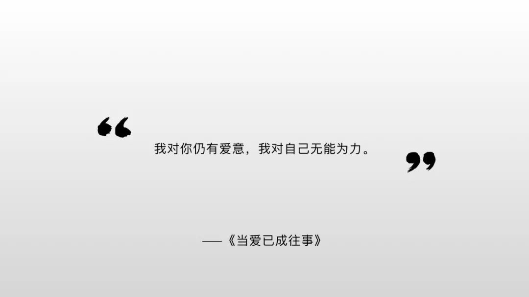 《当爱已成往事》说的是分手了,但有一方还是不甘心,仍然有爱意。我不应该爱你了,但我控制不住自己啊。「我对自己无能为力」,你看这句话比「我不能控制自己」高级多少。