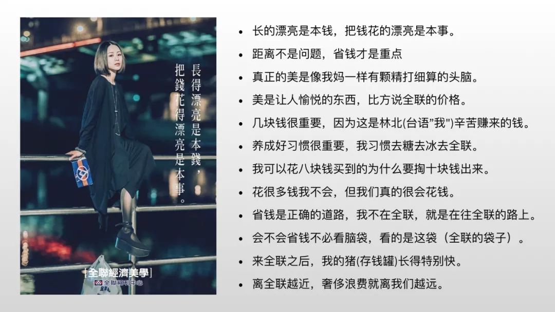 所以全联的广告大家看,他换着花样的去说的就这么一件事,我为什么能帮你省钱,这就是全联给消费者者找的犯罪动机,我千方百计为你省钱,你来不来,这就是我们需要为消费者寻找的「犯罪动机」,对消费者而言,花钱可以,你理由要好。