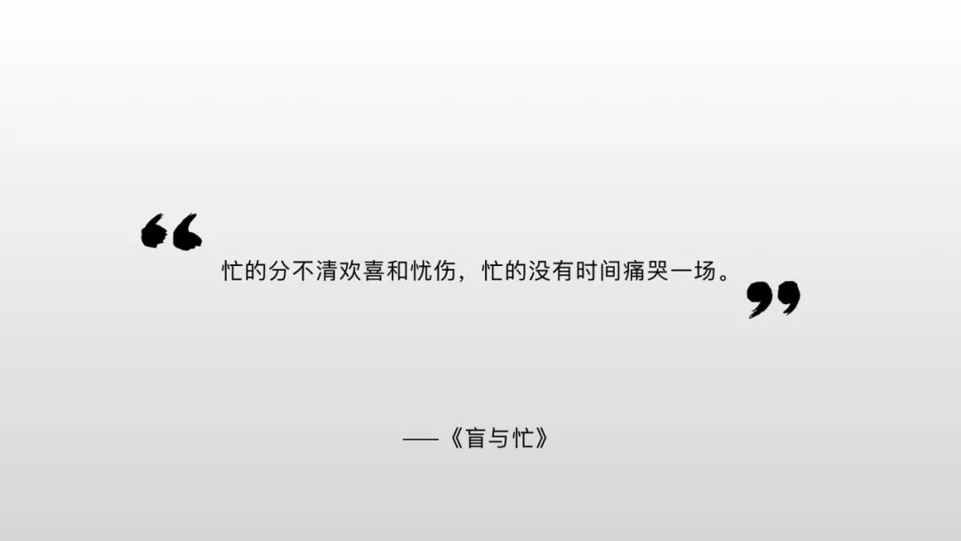 《忙与盲》是 1985 年的歌,但写的都是今天的忧伤。所以社会科技啊什么的进步得都很快的,人心是很慢的。1985 年的歌依然能完美印证你此时的心情,那你告诉我社会到底进步了什么。