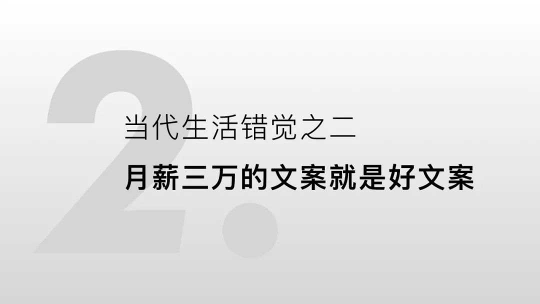 很多我们能看到的好案子的文案都是总监级的人写的,人家作为总监写了一段文案,你说人家是月薪三万的文案合适吗?月薪两三万的总监还干个什么劲儿啊,早点辞了算了。