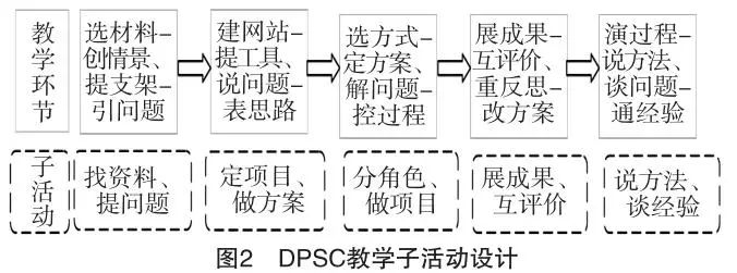 设计子活动,细化实施方案,在活动设计中应尽量规避行动研究中发现的问题,设计五种子活动,落实DPSC教学实践环节(如图2所示)。活动目标紧紧围绕培养问题解决能力而展开(如表2所示),每个子活动计划时长以天为单位,整个项目周期计划为期2周,评价点反应了每个子活动的观测点。