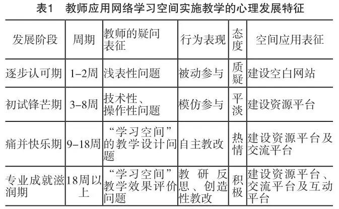(一)教师应用网络学习空间开展教学活动的心理发展阶段及特征分析