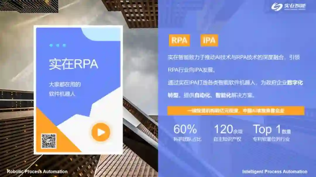 实在智能创立于 2018 年 7 月,到现在已有 4 年时间。我们在 RPA 领域融合 AI 技术,打造了各种各样的数字员工。实在智能先后经历了 6 轮融资,有超过 60% 的同事是科研人员,员工规模近 400 人,目前已掌握 120 项自主知识产权,申请专利数超过 40 项,近 20 项是实授专利,居行业第一。