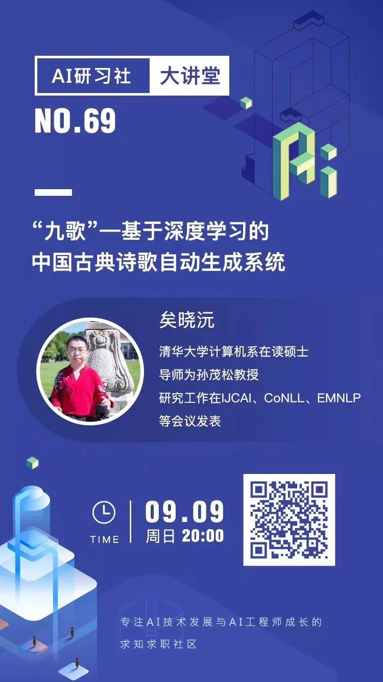 近年来人工智能与文学艺术的结合日趋紧密,AI自动绘画、自动作曲等方向都成为研究热点。诗歌自动生成是一项有趣且具有挑战性的任务。在本次公开课中, 讲者将介绍清华自然语言处理与社会人文计算实验室的自动作诗系统,“九歌”,及其相关的技术方法和论文。