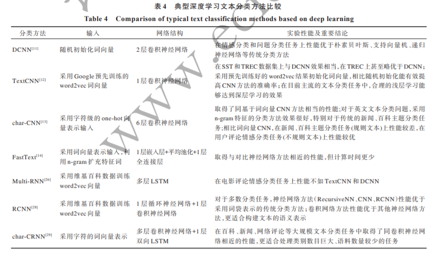本文对基于深度神经网络的文本分类技术进行介绍和分析,阐述卷积神经网络、循环神经网络和注意力机制等方法在文本分类中的应用和发展情况,总结各类方法的特点及区别,并对不同方法的性能表现和适用场景进行比较,讨论在应用深度学习方法处理文本分类任务时应当注意的问题。在此基础上,指出针对该技术未来的研究方向。