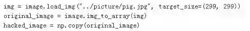 然后加载我们攻击的图片,比如我们的小猪。这里需要特别强调的是,NumPy出于性能考虑,默认的变量赋值会引用同样一份内存,所以我们需要使用np.copy手工强制复制一份图像数据。