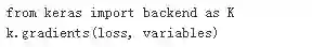 Keras里面提供相应的工具返回loss函数关于variables的梯度,variables为张量变量的列表,这里的loss函数即损失函数。