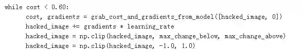 下面我们要定义最关键的三个函数了,我们定义损失函数为识别为烤面包机的概率,因此我们需要使用梯度上升算法,不断追求损失函数的最大化,变量object_type_to_fake定义的就是烤面包机对应的标签,在InceptionV3中面包机的标签为859。