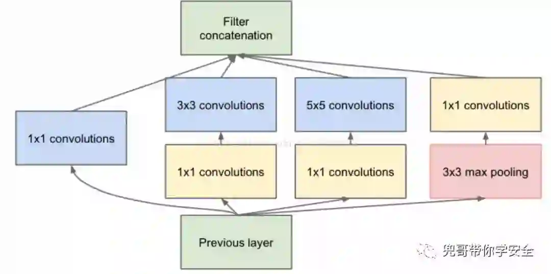 一般的卷积层只是一味增加卷积层的深度,但是在单层上卷积核却只有一种,这样特征提取的功能可能就比较弱。Google增加单层卷积层的宽度,即在单层卷积层上使用不同尺度的卷积核,他们构建了Inception这个基本单元,基本的Inception中有1x1卷积核,3x3卷积核,5x5卷积核还有一个3x3下采样,从而产生了InceptionV1模型。InceptionV3的改进是使用了2层3x3的小卷积核替代了5x5卷积核。