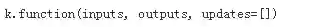 Keras也提供了function用于实例化一个Keras函数,inputs是输入列表列表,其元素为占位符或张量变量,outputs为输出张量的列表