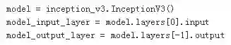 以攻击InceptionV3模型为例,介绍生成攻击样本的基本原理。Keras内置了这个模型,我们直接使用就可以了。从模型中直接获取第一层的输入作为输入层,最后一层的输出为输出层。