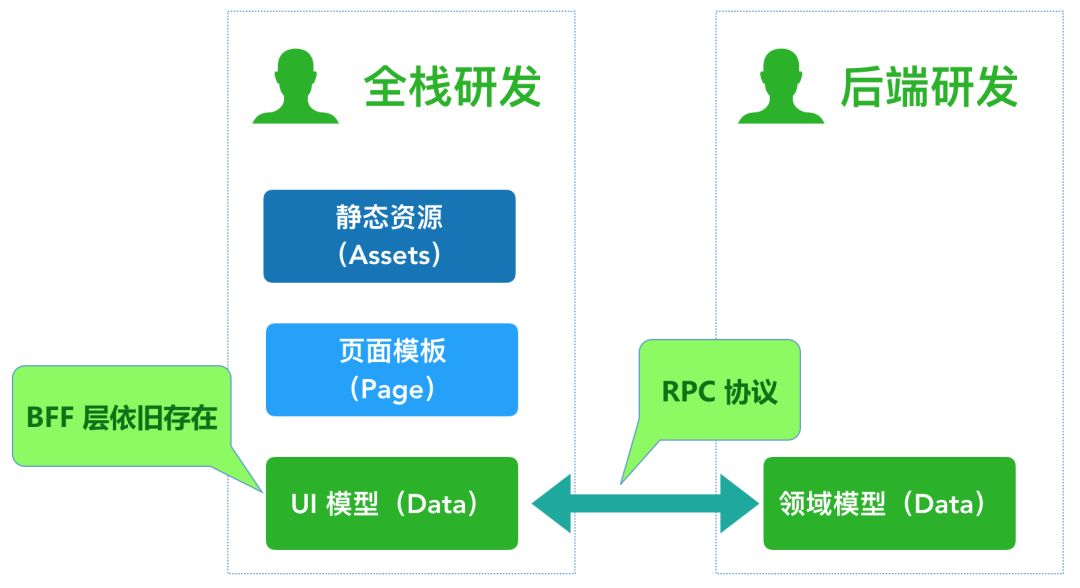 全栈研发,专注于处理 Web 层,比模板层更进一步,接管 BFF 层。