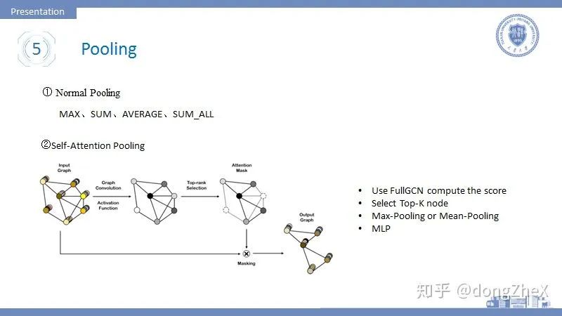 Pooling常用于readout中进行全局池化,最基本的方法有Max-pooling、SUM-pooling、mean-pooling等。