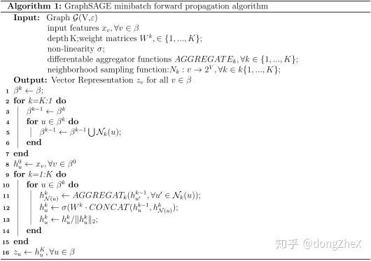 分批采样若干源节点,对于其中一个中心节点来说,首先对其一阶邻居采样固定数目个节点,若感受野为2,则在对中心节点的每个一阶邻居的邻居节点进行固定数目的采样,采样数目为超参数。一般感受野的大小K=2.