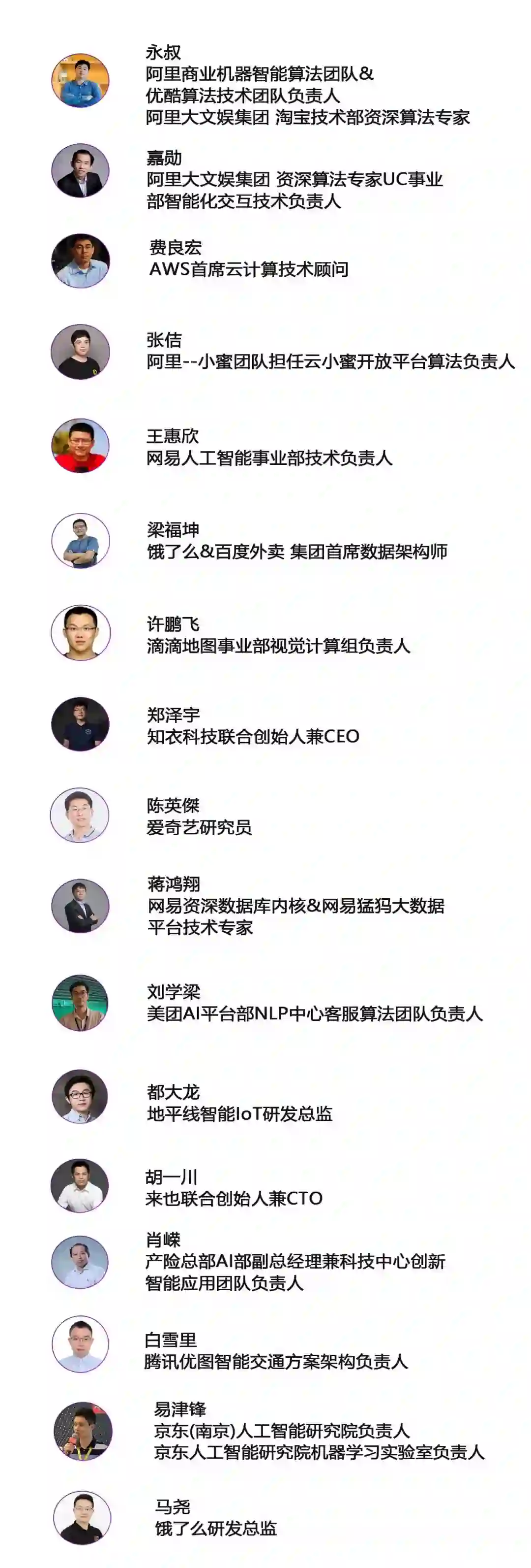 主会场,我们邀请到来自阿里、科大讯飞、亚马逊、华为、京东等人工智能领袖,他们将分享全球最前沿的技术风向,总结自身经验与踩过的坑。