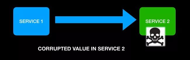 如果 Service 2 损坏了数据或值,拜占庭式的故障就会发生,即使服务看起来运行得很好,就像在这个例子中: