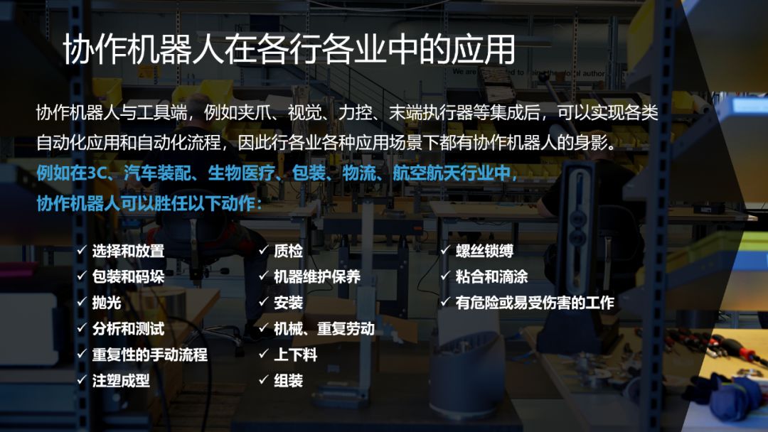 协作机器人发展至今,在中国市场已经不再只是一个概念,而已经成为了现实。在各行各业,各种应用场景下,协作机器人都在与人并肩工作着。我们说协作机器人改变的不仅仅是生产方式,更是生产关系。