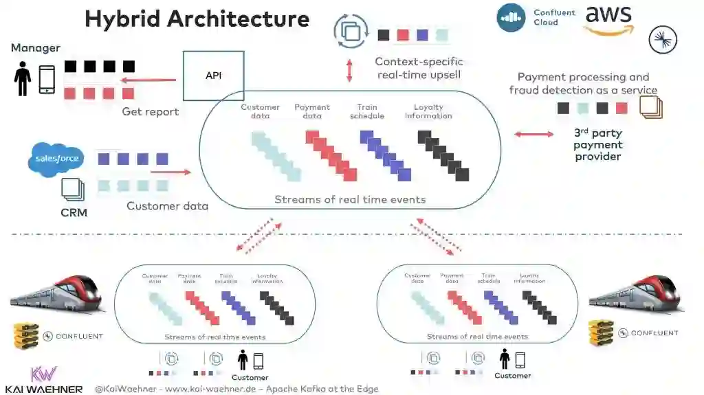 假如在上述德国铁路公司有关的项目(但纯属虚构)中有一种混合架构,包含实时应用程序、云和列车中的边缘计算: