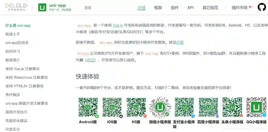 DCloud公司拥有370万开发者用户,旗下 uni-app有5万+案例、900款插件、50+微信/qq群,并且被阿里小程序工具内置(详见),开发者可以放心选择。
