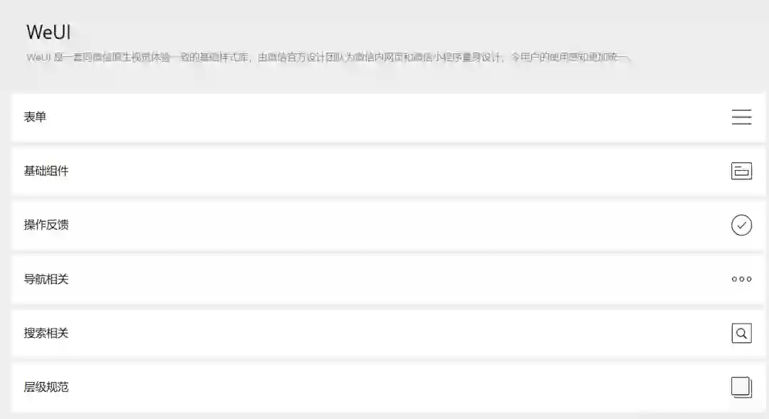 WeUI 是一套同微信原生视觉体验一致的基础样式库,由微信官方设计团队为微信内网页和微信小程序量身设计,令用户的使用感知更加统一。对微信的支持是非常完美的,基本你想要的组件这里都能找到。