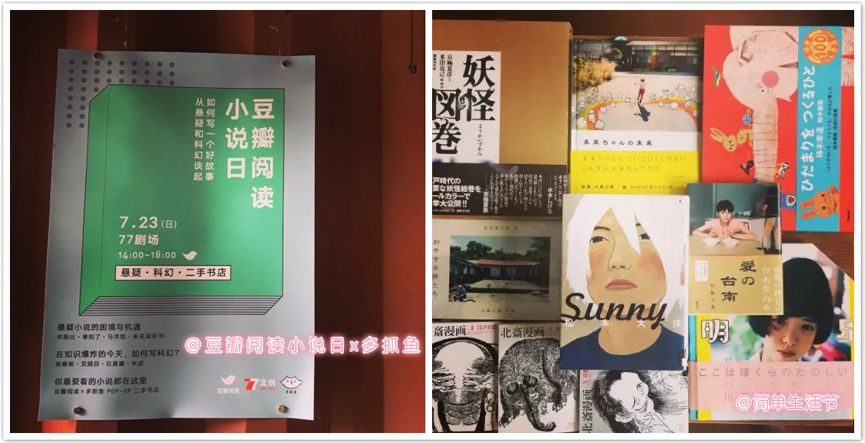 多抓鱼在2017年7月23日的 #豆瓣阅读小说日#与豆瓣阅读联合举办线下“快闪书店”,摆摊位出售切合主题的科幻、悬疑的精选二手图书。因为调性与豆瓣阅读用户喜好基本重合,合办快闪书店能借豆瓣庞大的用户群体和品牌效应增加曝光,并把目标受众从线下活动引导到线上去关注公众号。
