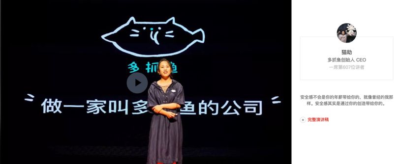 CEO诉说创业史这种为产品引流的手段并不新鲜,但多抓鱼能取得比较好的效果,在于他们选择了一个非常切合的传播平台【一席】。