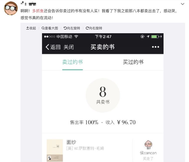 为了提高售出率,用户可能会将更多更优质的书卖给多抓鱼,又进一步促进了买卖正向循环。