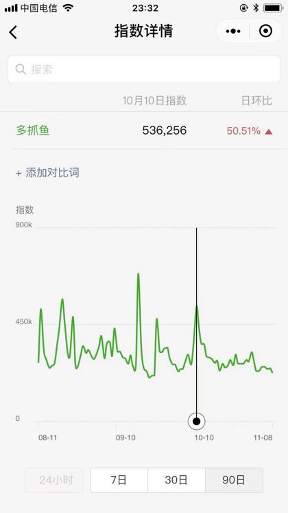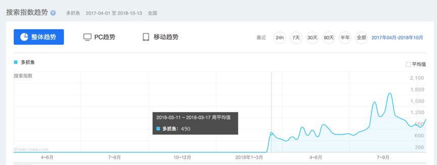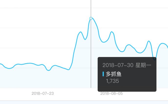 微信指数更加明显,2018年7月30日是多抓鱼迄今为止微信指数最高的一日。