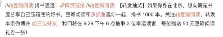 同时,与豆瓣阅读合作,发起捐正版好书给“最美丽图书馆”帮篱苑书屋换好书活动,并且在产品中上线捐书功能。