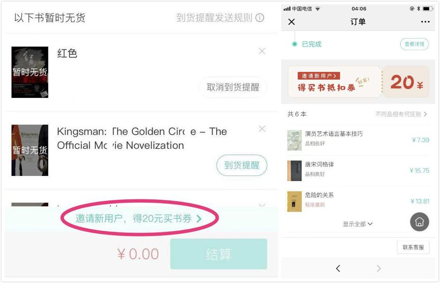 加上买书券在设计上简单却足够抢眼,不会像有些刷屏的拉新活动图显得太low,用户得到实惠又不会因为惹人反感而透支社交,分享意愿会更加强烈。