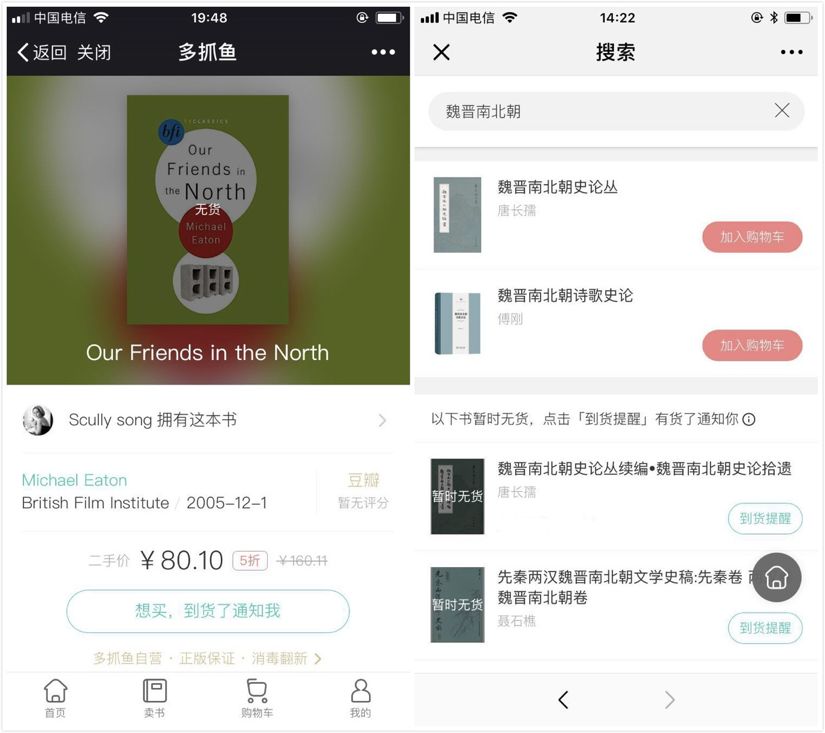 作为一家买卖二手书平台,多抓鱼提供的产品满足了用户“价廉”的要求,但C2B2C的模式注定不会像传统电商一样备货充足,用户卖给网站什么,网站就只能出售这些东西,尤其是在平台刚刚起步还未有大量的存货时,“缺货”问题尤其明显。多抓鱼为了留住用户从如下几个方面进行了改进: