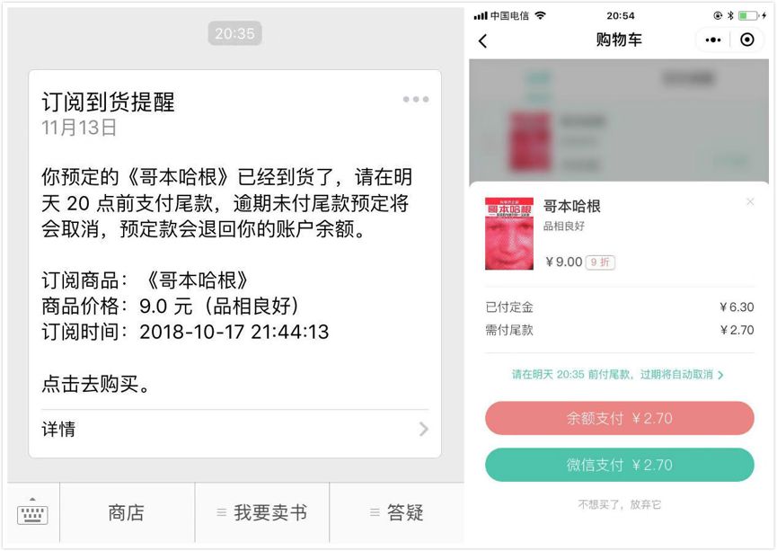 规则只允许一个人同一时段预定一本书,待该本成功购买7天后才能预定下一本,既避免了有的用户囤积居奇影响他人购书,又保证预定的人是真心实意想买,促进了下单转化率;“预定”只能用卖书所得的账户余额而不支持直接充值,能鼓励更多人卖书给平台,将买卖的闭环顺利建立起来。