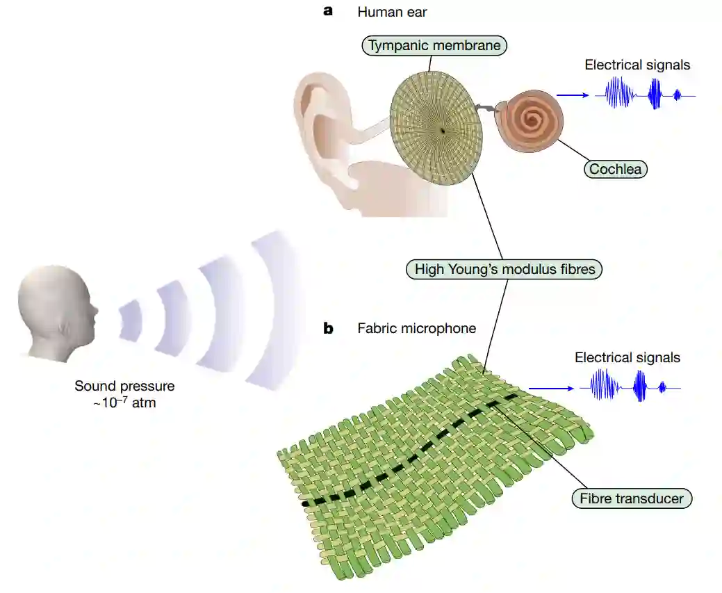 此次在寻找声音感应织物的方法时,人耳的「听声原理」给了研究人员很大的灵感。