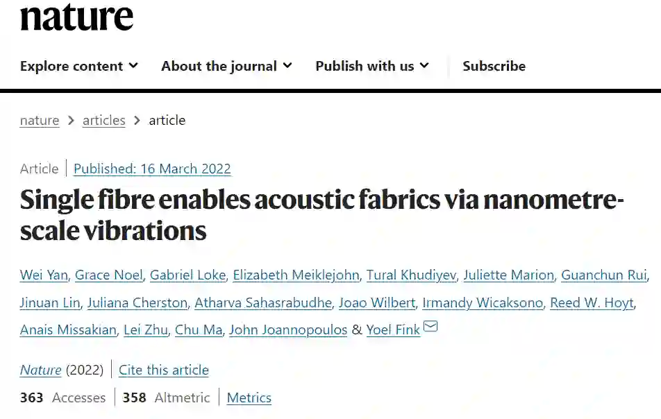 「它可以与航天器服装集成,以监测太空尘埃,或嵌入建筑物中,以检测裂缝或应变,」Yan 建议道。「它甚至可以编织成一个智能网来监测海洋中的鱼类。由此可见,声感纤维正在开启一个极大的机遇。」