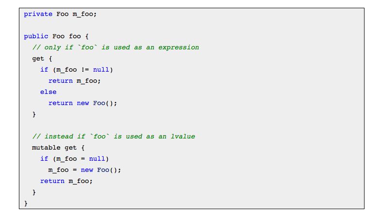 请注意,至少在静态类型语言中,由于方法foo() , set_foo()和has_foo()之间的命名关系, 我们无法抽象处理。 除了预处理器宏之外,我们无法以编程方式生成它们: