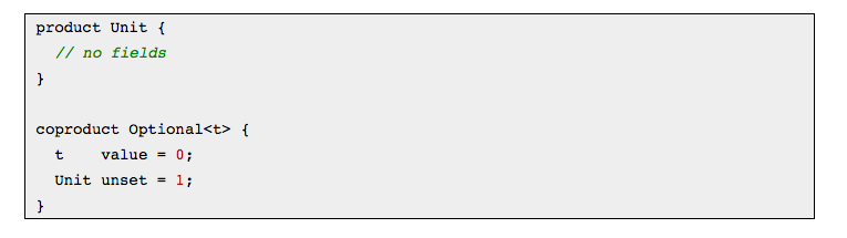 让我们谈谈另一个有问题的决定。 虽然你可以在protobuffers中定义一个字段,但它们的语义不是副产品类型! 相反,对于每种情况你得到一个可选字段,以及setter中的魔术代码。如果设置了一个,它会将其他情况清除掉。
