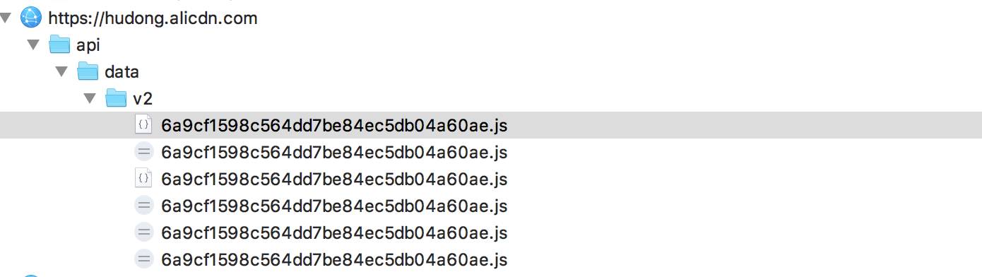我们来抓淘宝APP的请求地址,突然有一个地址让我眼前一亮,hudong.alicdn.com这里面有很多js的文件地址,如图: