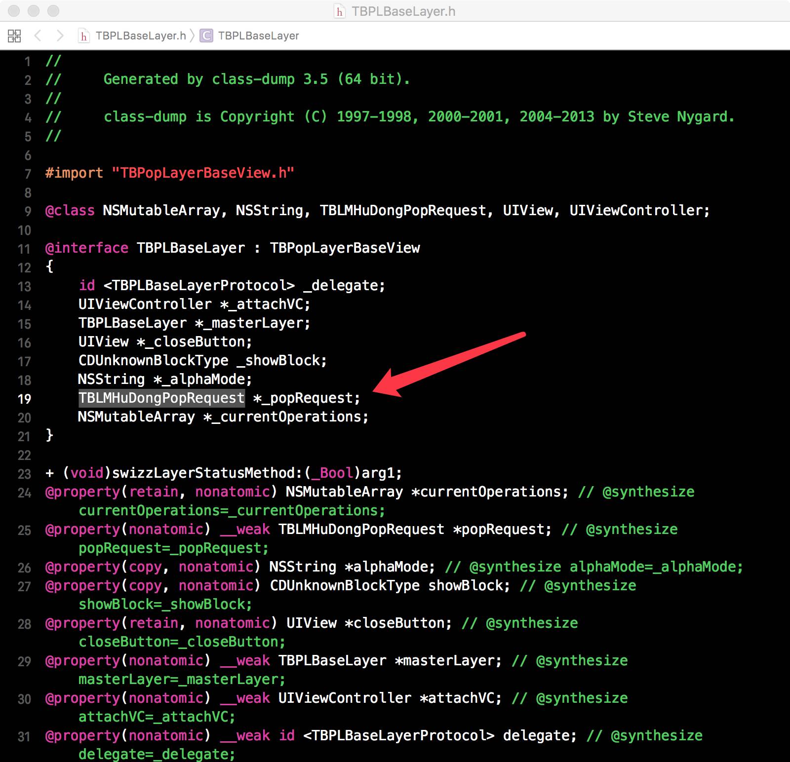我们观察到在这个类的初始化方法中有huDong这个拼音,于是我想应该和这个关键词有关。我们再看看它的父类TBPLBaseLayer,在它的父类里我又发现了这个关键词,如图: