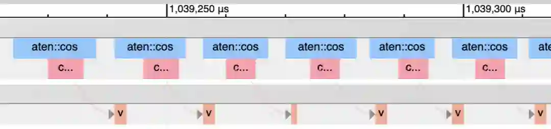 另一种方法是使用PyTorch profiler。粉色线条显示了CPU内核与GPU内核的匹配情况。当GPU在等待CPU的开销时,就有很多空隙。