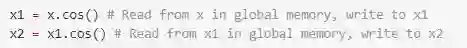 如果换成pyTorch的代码就是把两行代码转为一行x.cos().cos(),效率能够提升两倍。