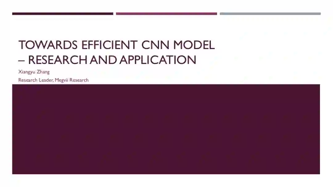 本次讲座主要围绕实用模型设计的两个常用技术:轻量级模型设计和模型裁剪,重点介绍本团队在高效深度模型领域的科研成果和实践经验。分享内容包括 ShuffleNet v1/v2 系列,以及 Channel Pruning 等研究成果。最后,还将简单介绍模型设计的一些实用案例。