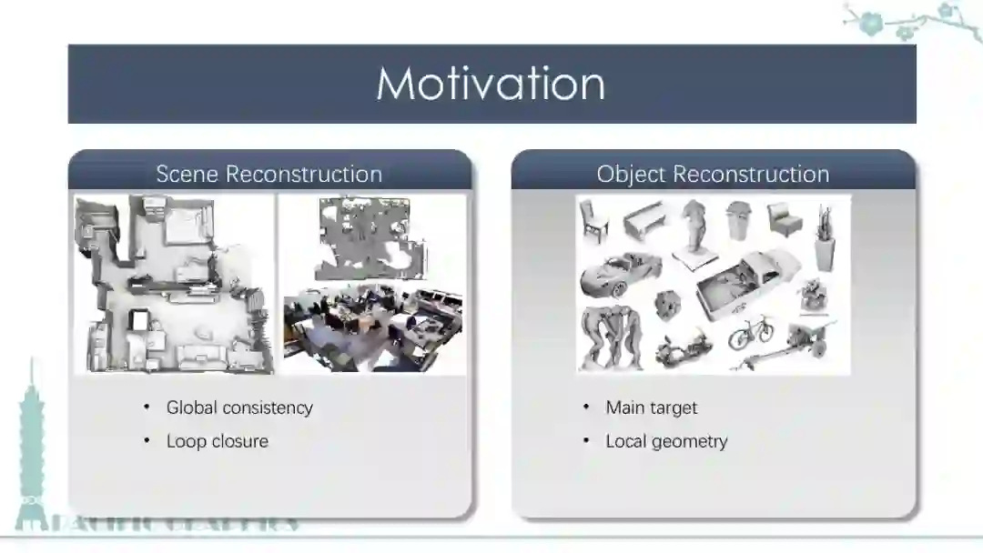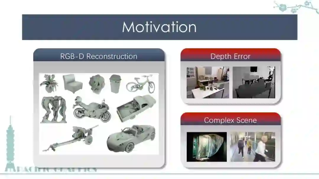 在这个 talk 中,我会展示如何利用显著性检测的方法,降低三维重建过程中背景物体对算法的干扰,并提升关键性物体的重建质量。该研究成果已发表于 Pacific Graphics 2017。