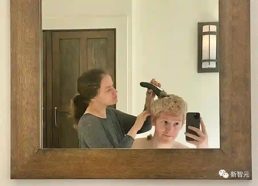 Silvana为Patrick亲自理发,他用手机拍下了这个甜蜜的时刻。