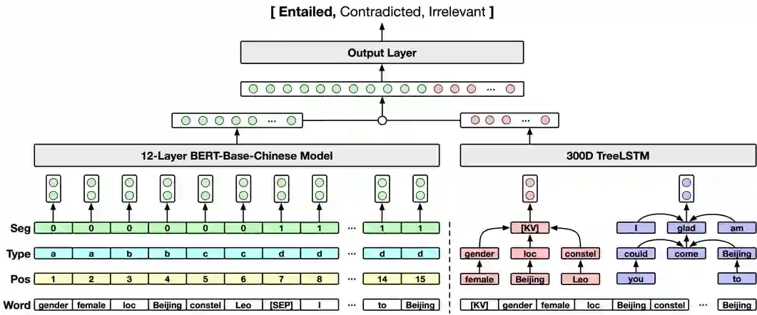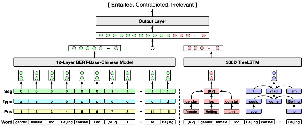 为了有效建模这种结构信息,我们使用了treeLSTM来学习这种结构表示。最终,来自BERT模型的语义表示和来自treeLSTM的结构表示会进行拼接并送入输出层,以预测最后的一致性关系。