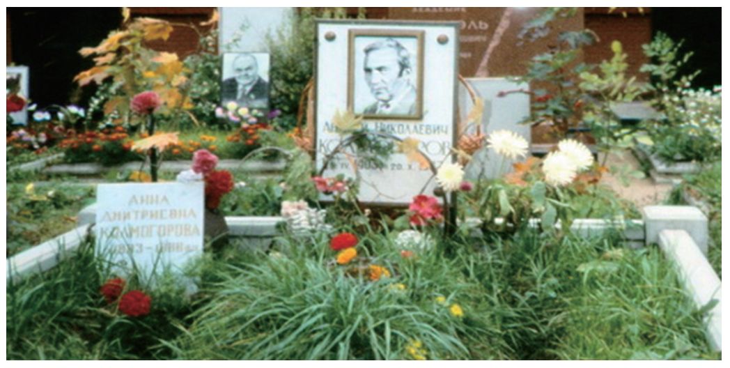 春动凤求凰,情鸳眷恋鸯;相思恩爱秀,缱绻地天荒。柯尔莫戈罗夫的婚姻很幸福。早在读高中时,他就认识了历史学家叶戈洛夫之女叶戈洛娃,俩人可谓经过了马拉松式的恋爱,直到柯尔莫戈罗夫39岁时才正式结婚。从此,他们相濡以沫,相敬如宾。1987 年10 月20日,柯尔莫戈罗夫去世,第2年叶戈洛娃也随之而去。图3为柯尔莫戈罗夫之墓。