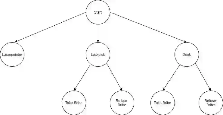 当你看到这个框架后,你会发现创建具有交互性的事物并不难,实际上只需要了解以下几个短语之间的区别即可:Laserpointer、Lockpick、Drink、Take Bribe、Refuse Bribe。