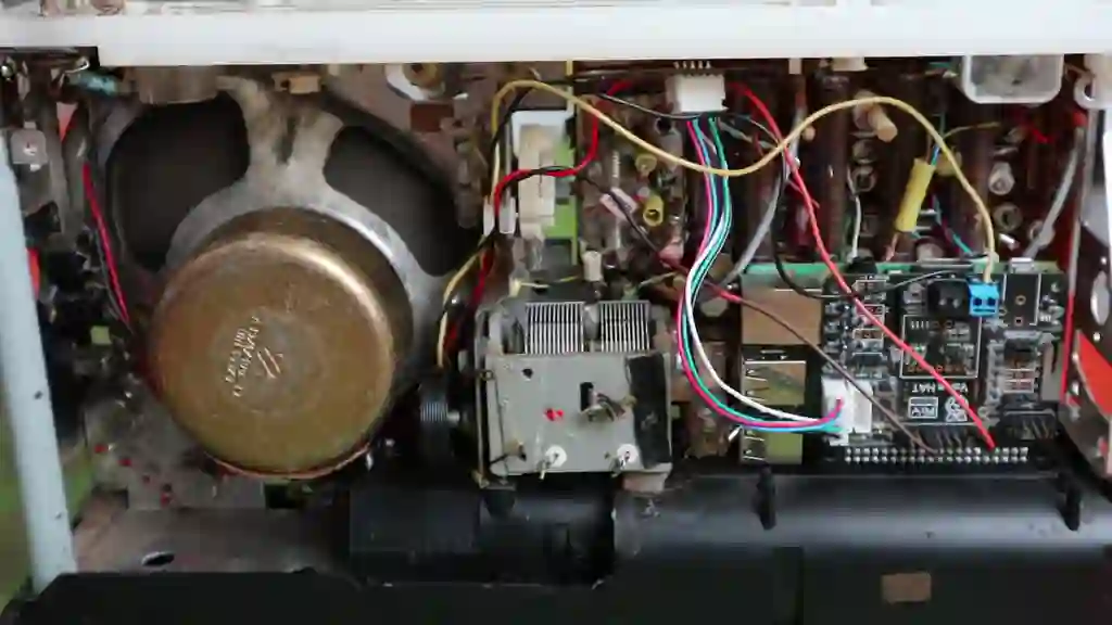 像大多数改造类的手工项目一样,本次也是使用一些旧的电子设备,确切地说是一台德律风根收音机,产于 1960 年代的西德。在完成拆解工作以后,他们保留了扬声器和按钮的部分。然后添加树莓派和其他零件。